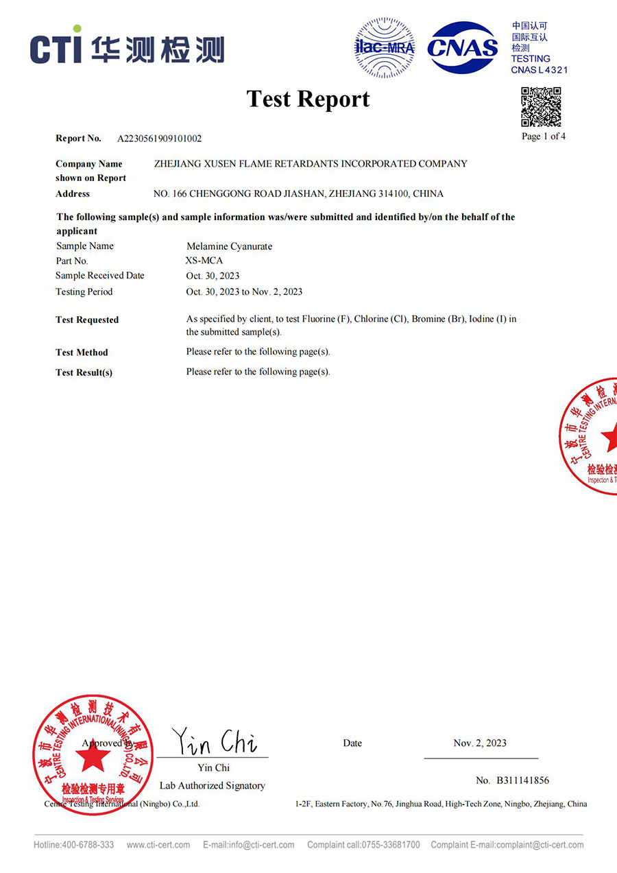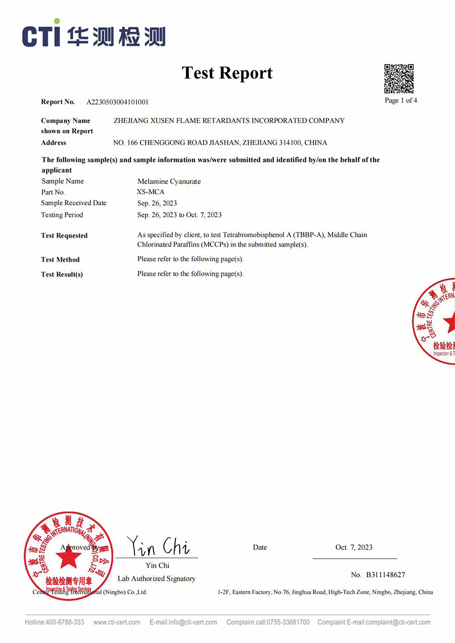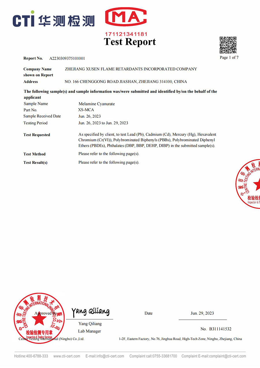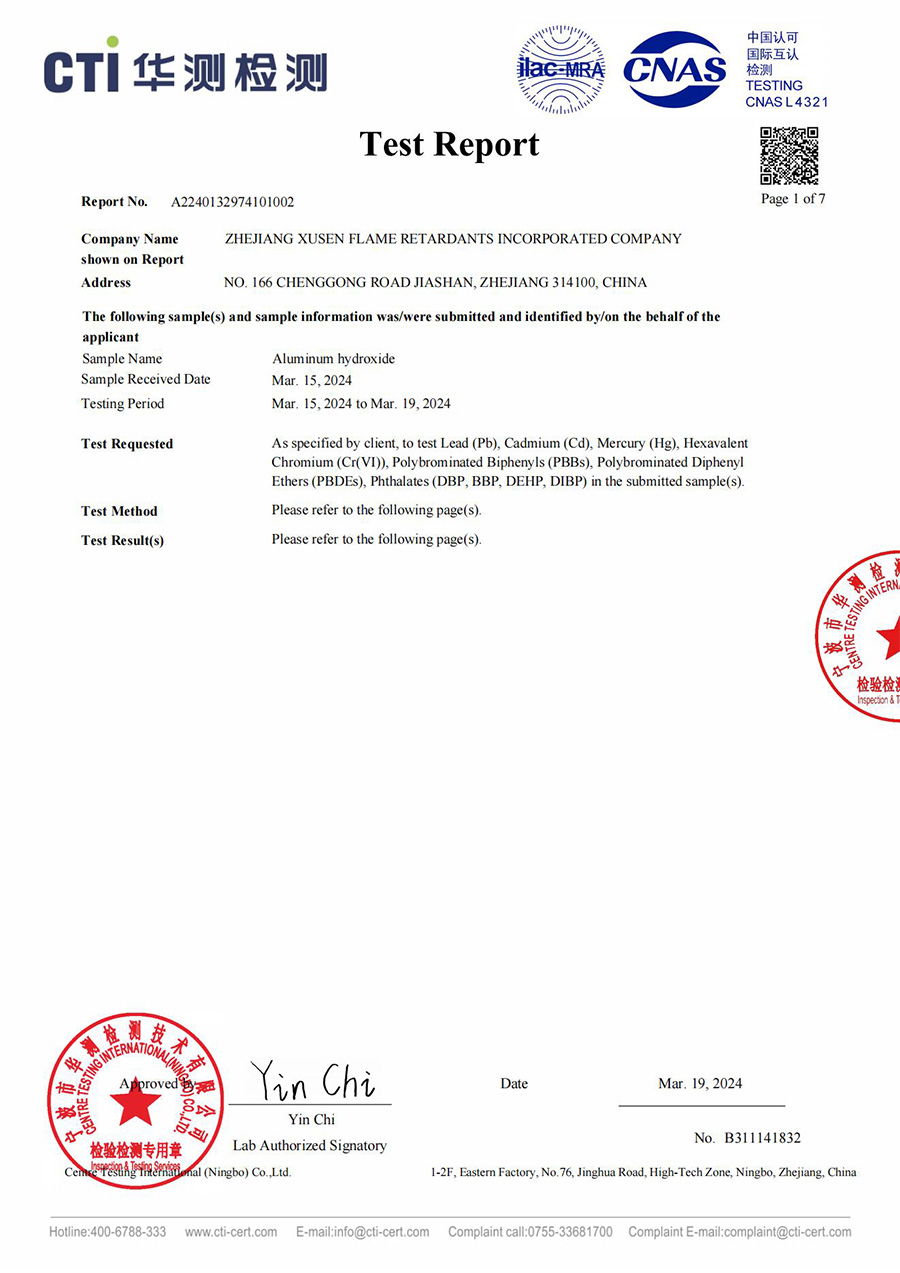 Retardant api untuk Laporan Tes Polyolefin ROHS